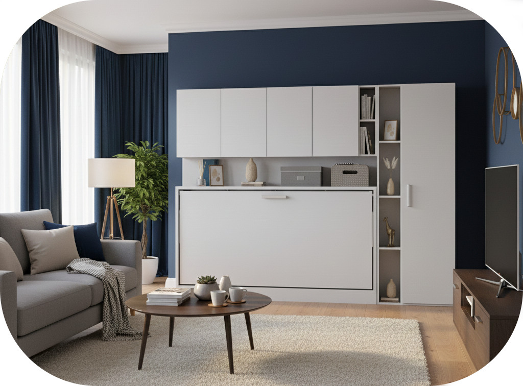 Kleine Wohnungen und Studios: In Einzimmerwohnungen oder kleinen Apartments, wo der Wohn- und Schlafbereich kombiniert werden muss, ermöglicht das Set die Verwandlung des Schlafzimmers in ein Wohnzimmer oder Büro während des Tages.