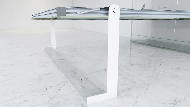 Selbstnivellierender Stützfuß für zusätzliche Unterstützung beim Ausklappen des Bettes. Beim Einklappen des Bettes dreht er sich sanft, wobei die Stützbeine nahtlos in den Seiten des Bettes verschwinden.