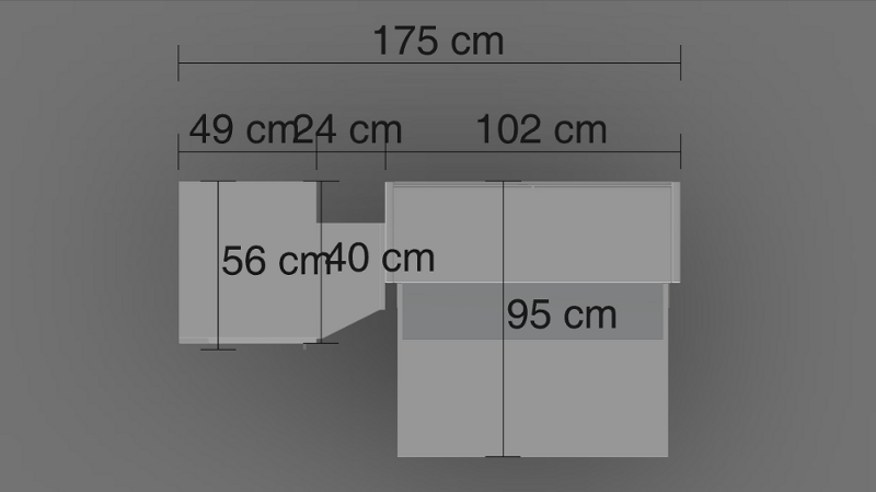 Die Möbel bestehen aus einer 30 und 18 mm starken, laminierten Spanplatte, deren Ecken mit einer 1 mm PVC-Beschichtung versehen sind.