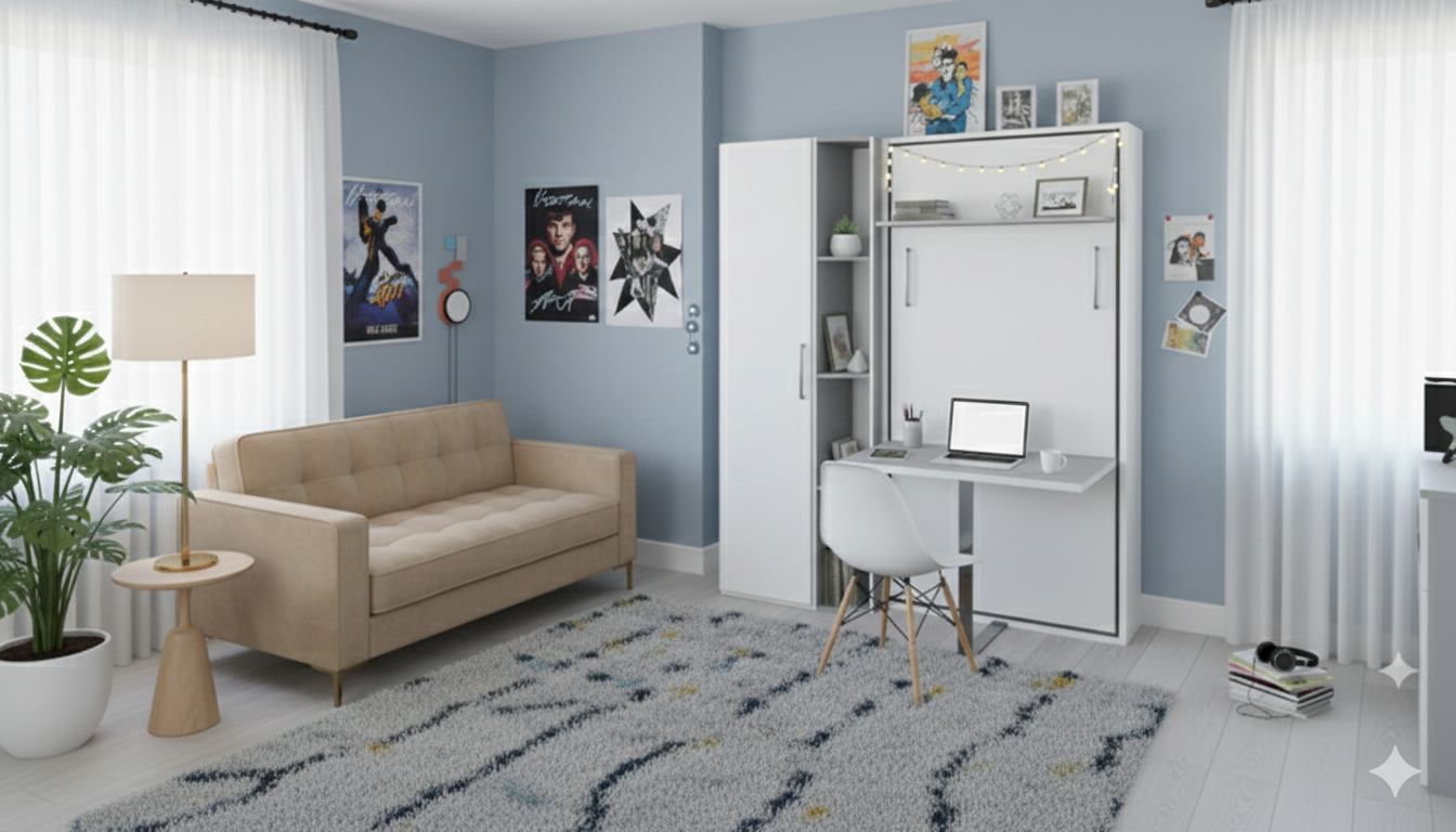 Mit diesem intelligenten Möbelstück verwandeln Sie jeden Raum im Handumdrehen von einem produktiven Arbeitsbereich in ein komfortables Schlafzimmer und zurück.